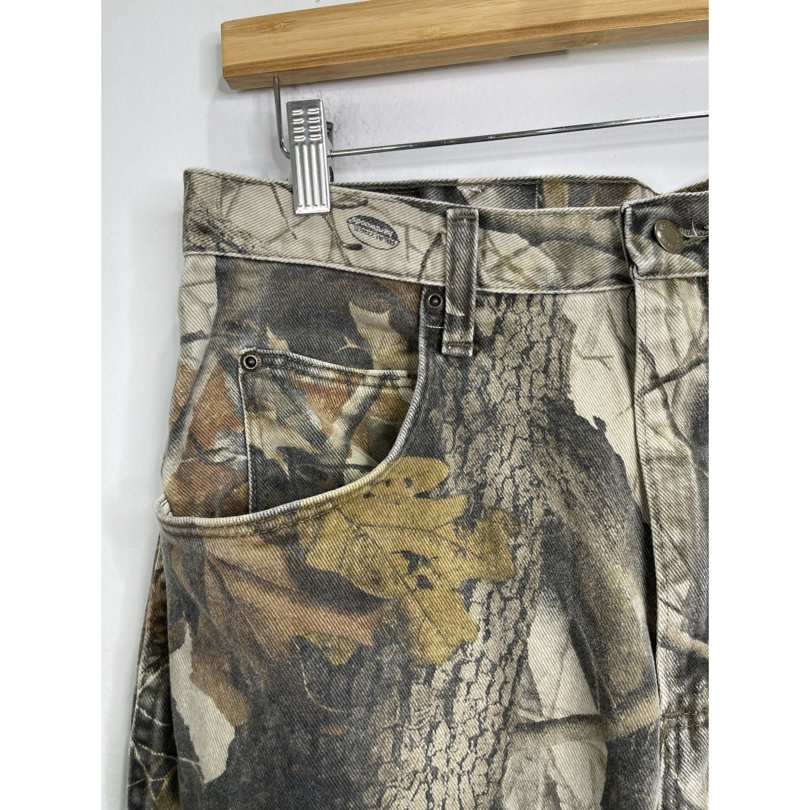 The Wrangler Double Knee Camo Jeans in size 34x34 are a rugged and stylish choice for the outdoor enthusiast. Made from durable denim fabric with a camouflage pattern, these jeans feature a straight fit and a mid-rise waist. The double knee design adds extra durability for outdoor activities, while the zip and button closure ensures a secure fit. Perfect for hunting or casual wear, these jeans are machine washable and adorned with the iconic Wrangler logo as a stylish accent.