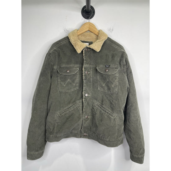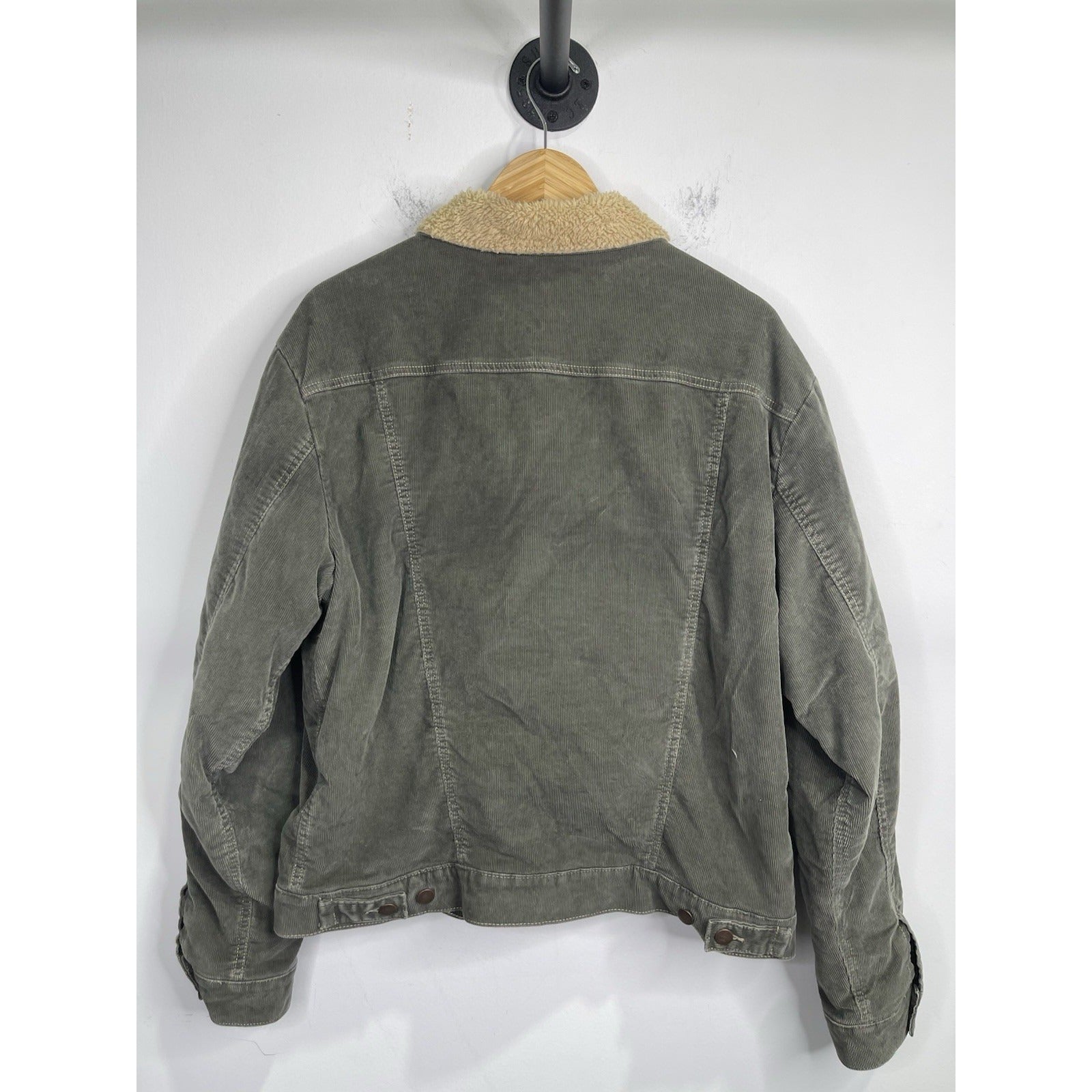 This WranglerMen's Corduroy Jacket in olive brown is a stylish and versatile addition to any man's wardrobe. Made from cotton corduroy, this lined jacket features a classic trucker style and is designed for regular fit in size Large. The gray color adds a modern touch to the classic design, making it a perfect choice for layering in various casual settings.