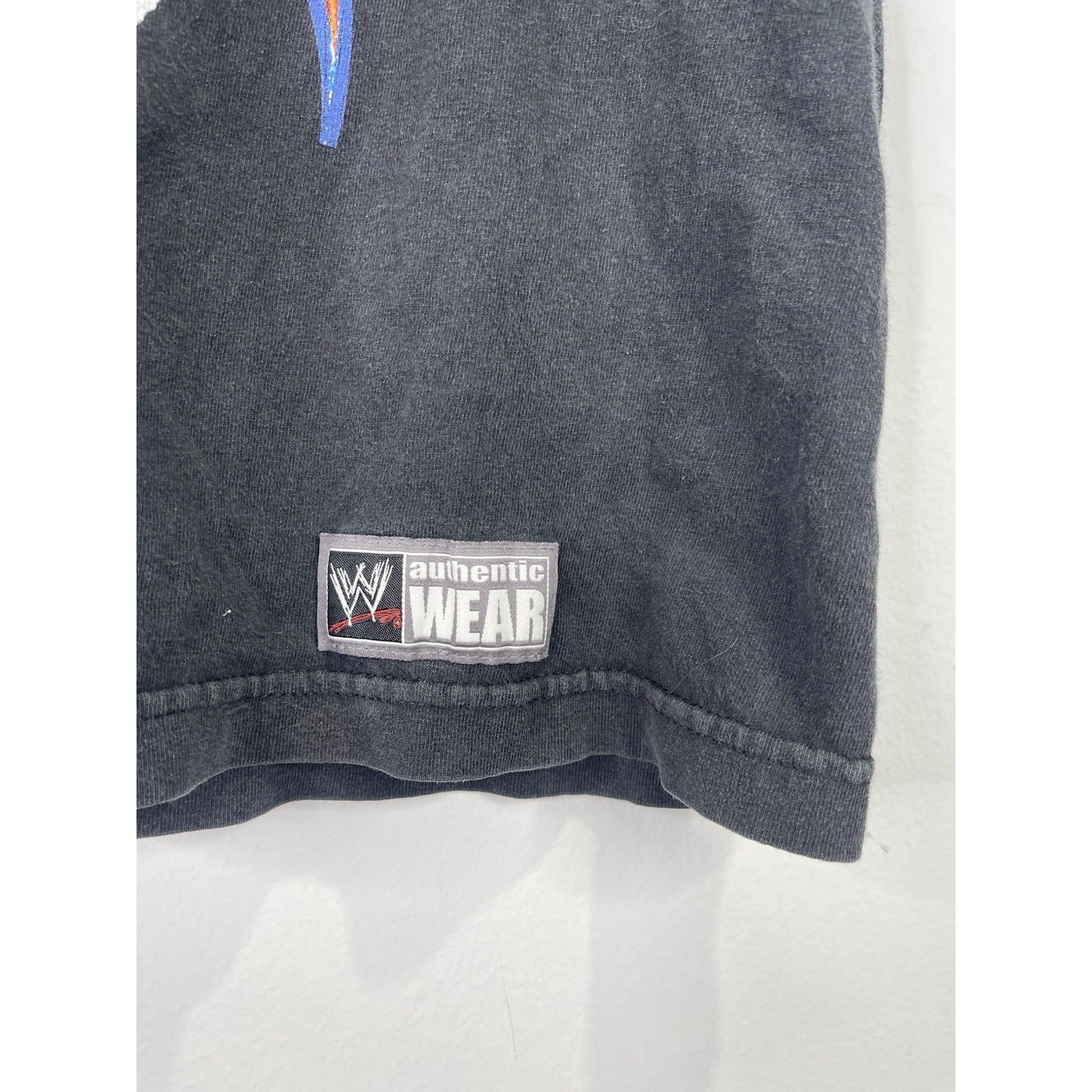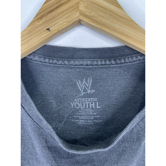 The WWE The Usos Uce O T Youth Large Wrestling T-Shirt is a black, double-sided shirt featuring the popular WWE wrestling duo, The Usos. This shirt is designed specifically for young fans of wrestling, making it a great addition to any WWE enthusiast's collection. With the WWE branding and The Usos wrestler design, this shirt is perfect for showing support for your favorite wrestling league and athletes.