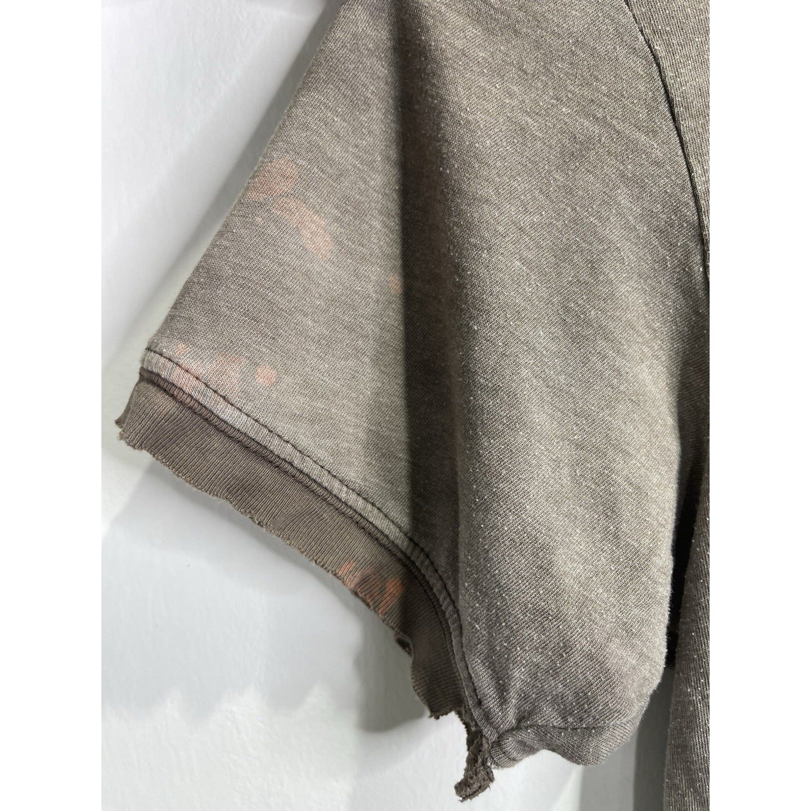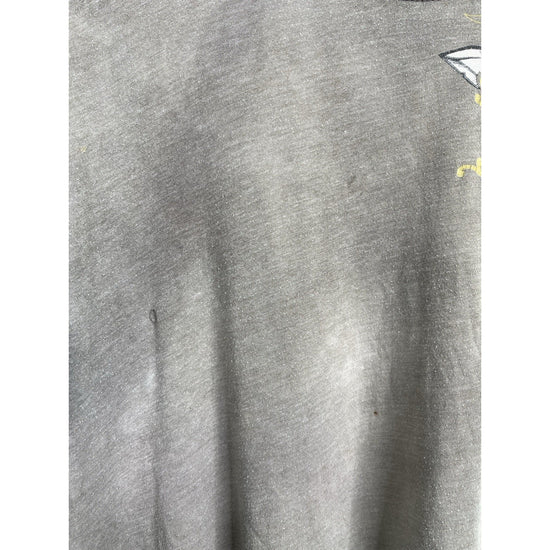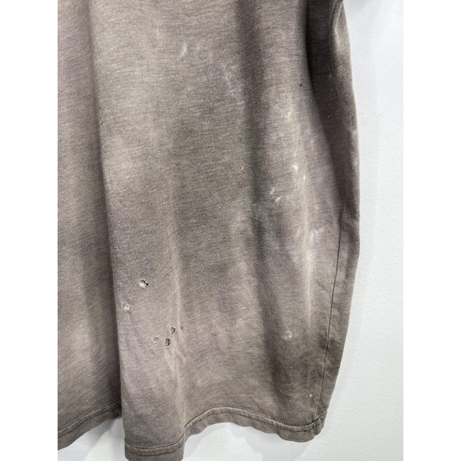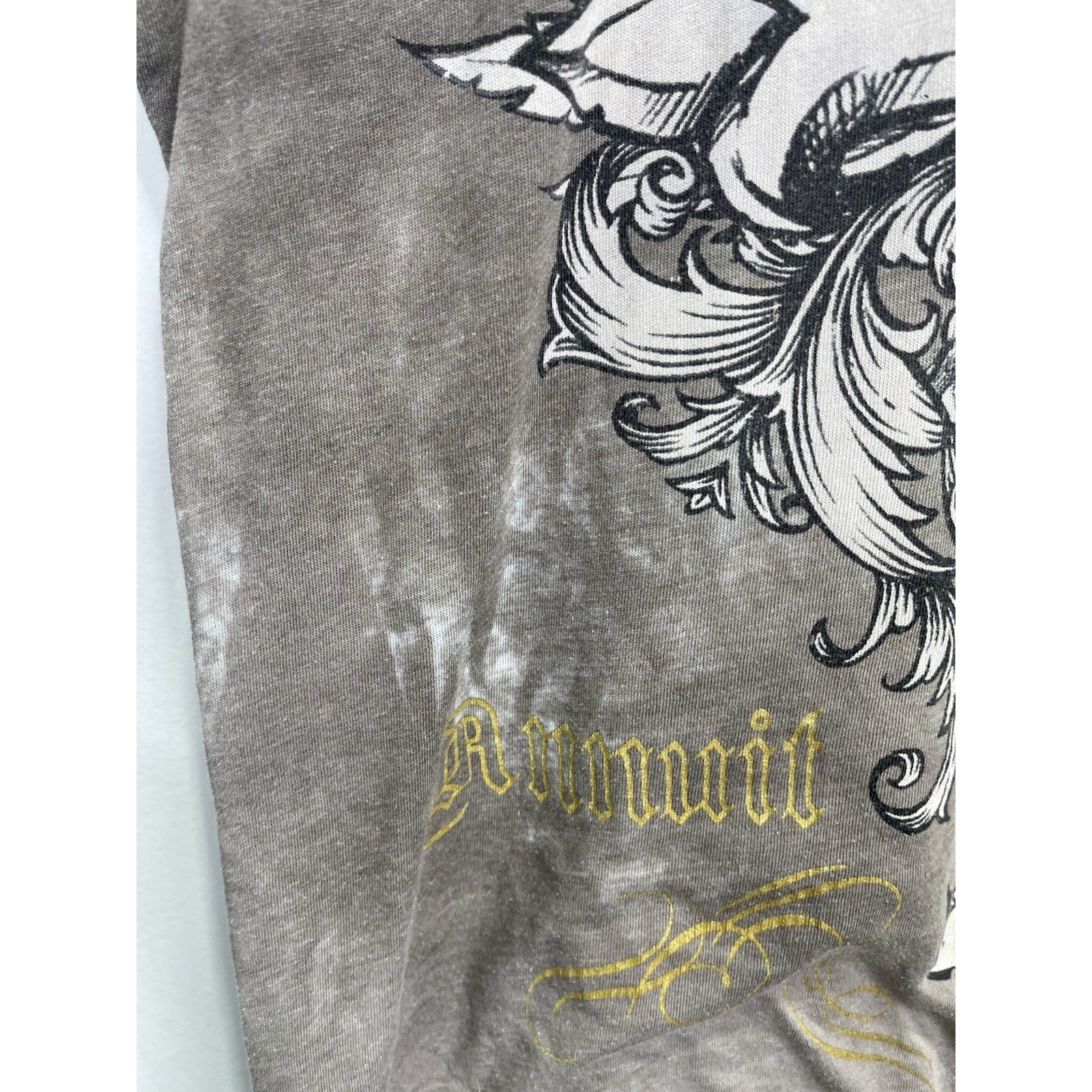 The product is a vintage Affliction style Y2K cross grunge t-shirt in size large. Made of cotton in a gray color, this shirt features a crew neck and short sleeves, offering a regular fit. With a grunge theme and all-season versatility, this United States-made t-shirt is perfect for men looking to add a touch of edgy style to their wardrobe.