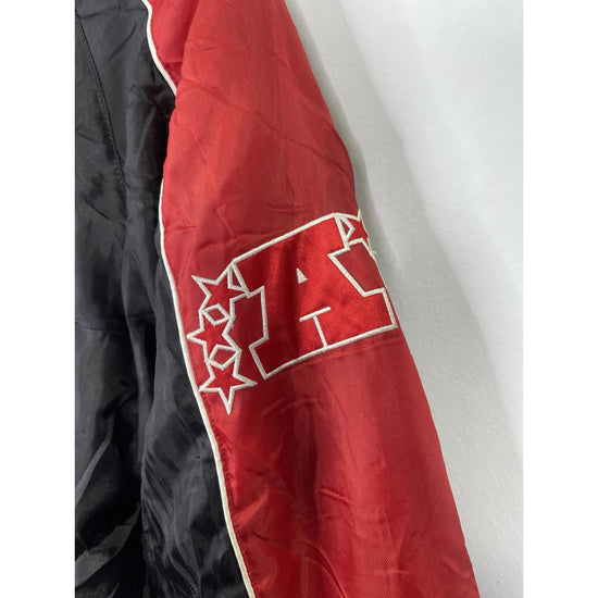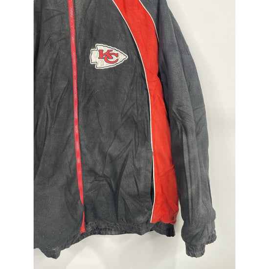 The Y2k Kansas City Chiefs reversible zip-up jacket in size medium is a must-have for any fan of the National Football League. Made by NFL, this officially licensed jacket features the iconic red color of the Kansas City Chiefs. This unisex adult jacket is perfect for showing support for your favorite football team in style. Made in China, this jacket is a great addition to any sports memorabilia collection.