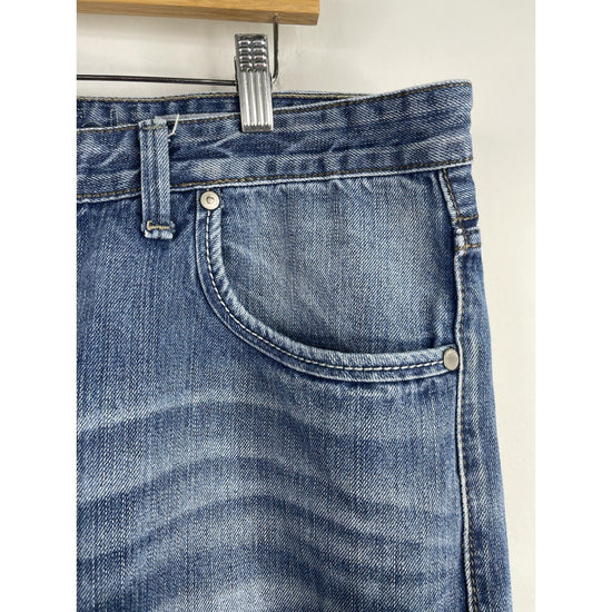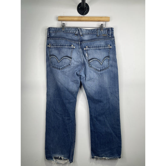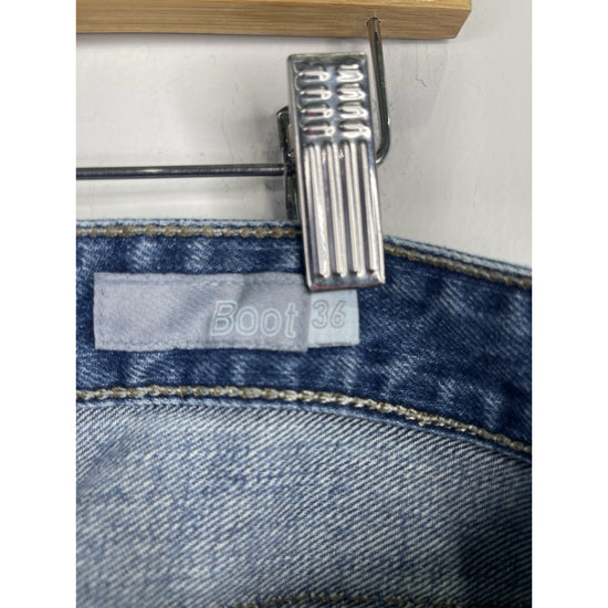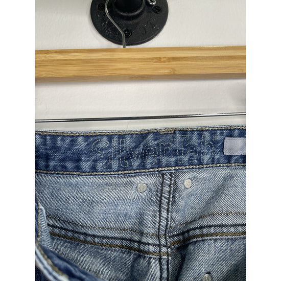 The Y2K Levi's Silvertab Jeans for men in size 36x30 feature a classic blue medium wash with a boot cut style, perfect for a Western-inspired look. Made of durable denim fabric with a mid rise, these vintage jeans are adorned with button accents and the iconic Levi's logo. The 5-pocket design and regular fit add both style and functionality, while the machine washable material makes them easy to care for. Ideal for any season, these Levi's Silvertab Jeans offer a timeless American cowboy theme that is sure to make a statement in any wardrobe.