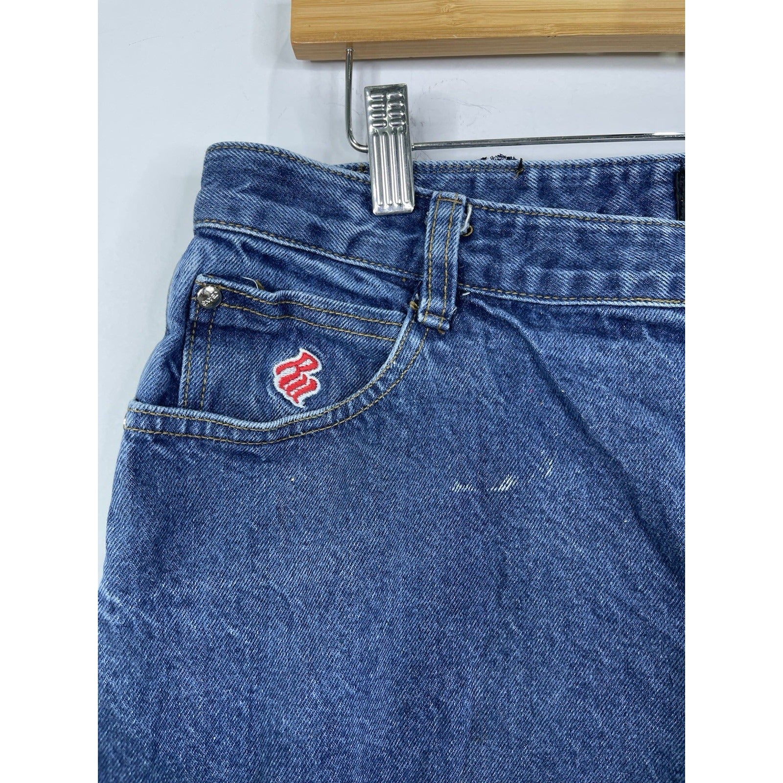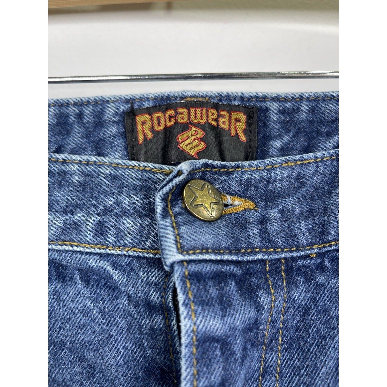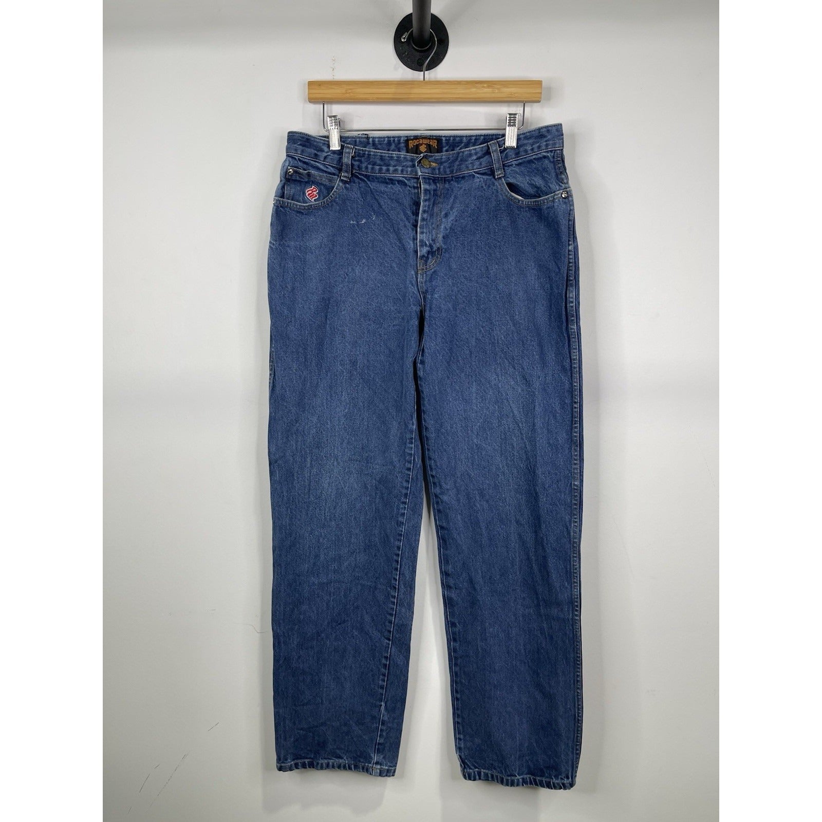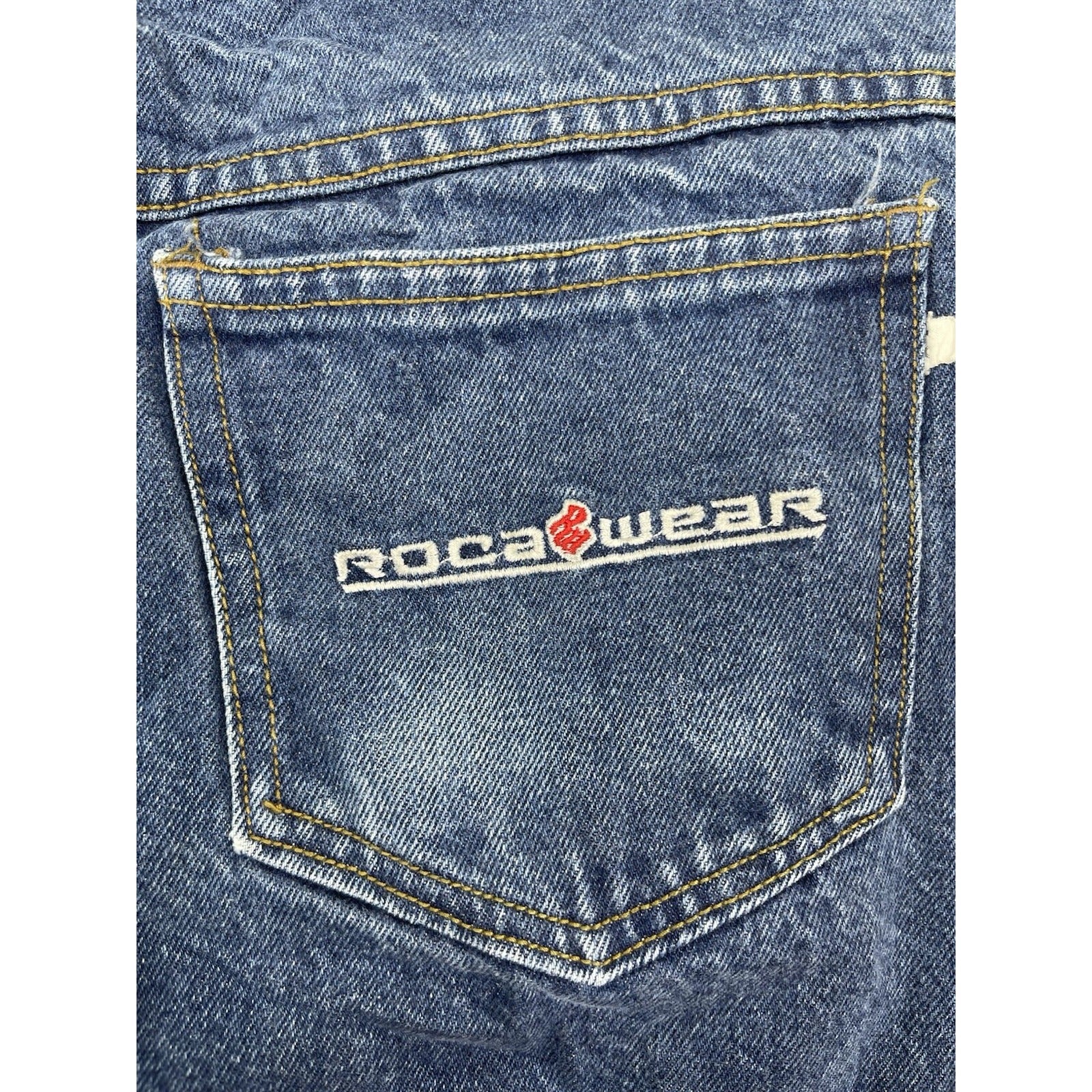 The Y2K Men’s Roca Wear Blue Denim Jeans in size 34 X 34 are a vintage pair of straight-cut jeans with a regular fit, perfect for those who appreciate 90s and hip hop fashion. Made from denim fabric, these jeans feature a classic blue color and are branded with Rocawear, adding a touch of style to any outfit. The 34-inch waist and 34-inch inseam make them a comfortable and versatile choice for everyday wear.