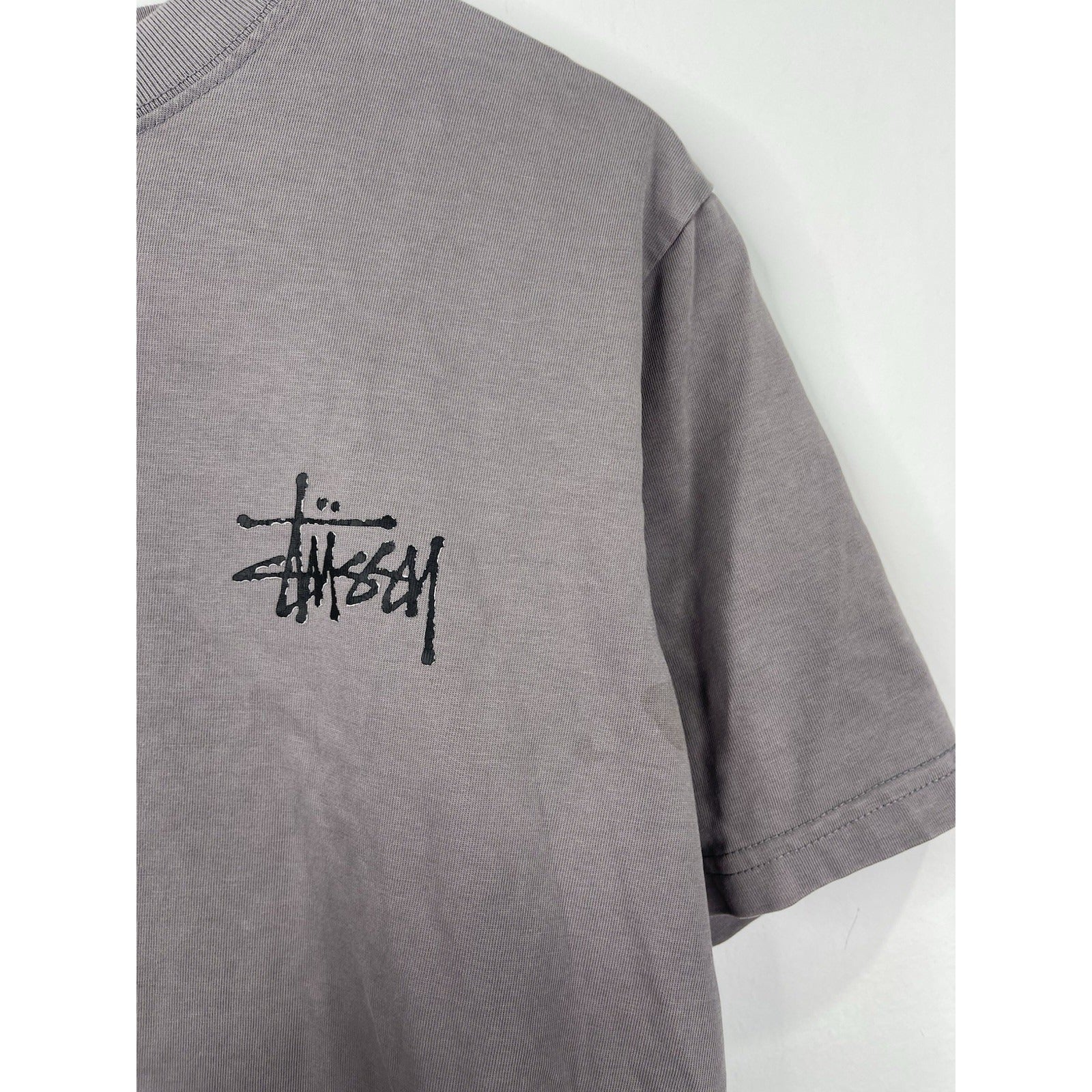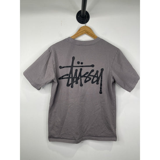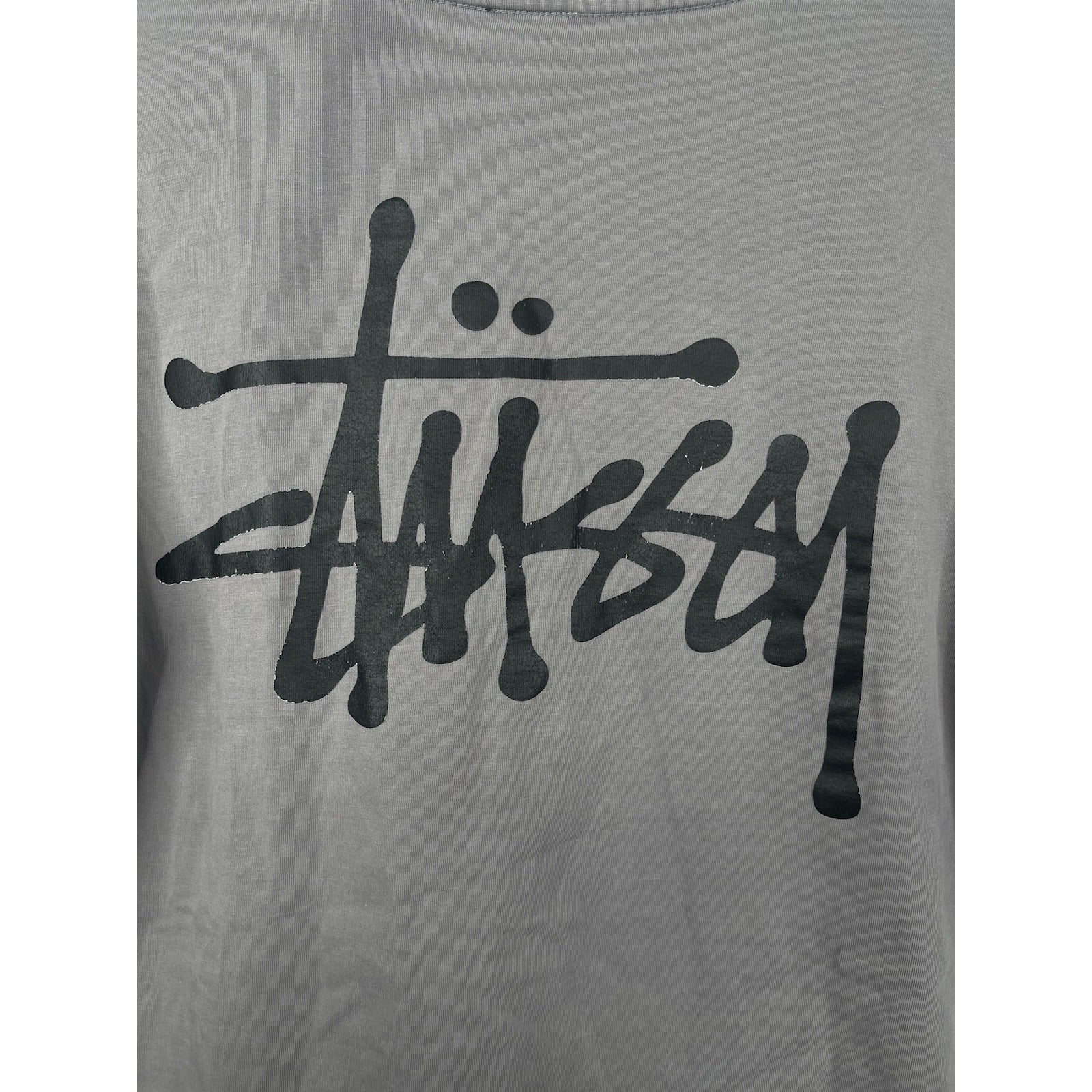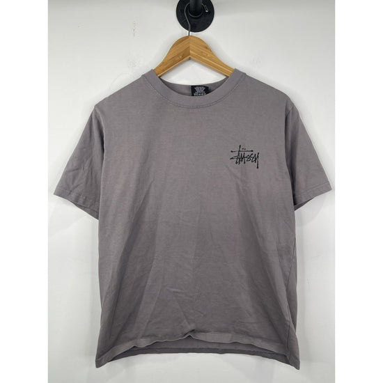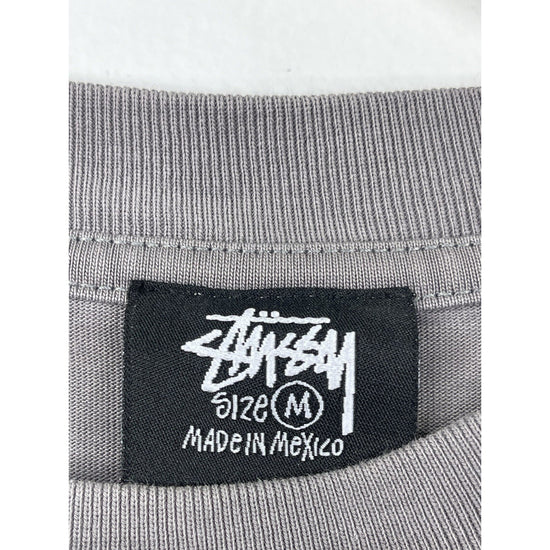 The Y2k Men's Stussy Dark Grey T-shirt in size Medium is a vintage piece made from cotton with a regular fit. Featuring a classic crew neck and short sleeves, this t-shirt exudes a Y2k theme that gives it a retro appeal. The branded logo from Stussy adds a touch of authenticity to this wardrobe staple, perfect for men looking for a comfortable and stylish option for everyday wear.