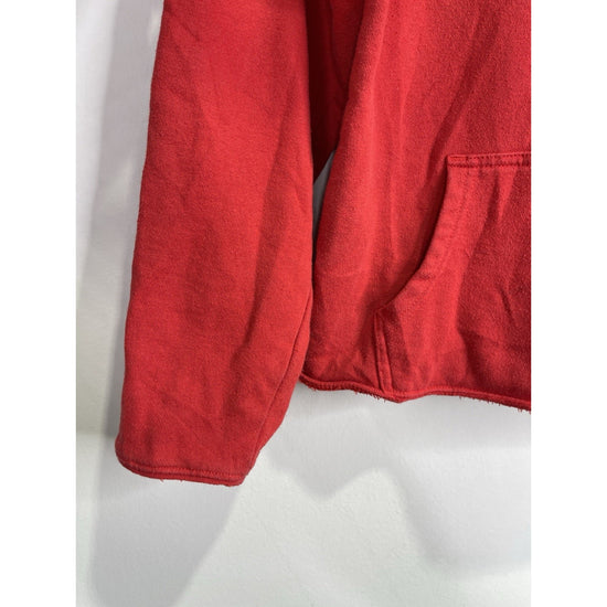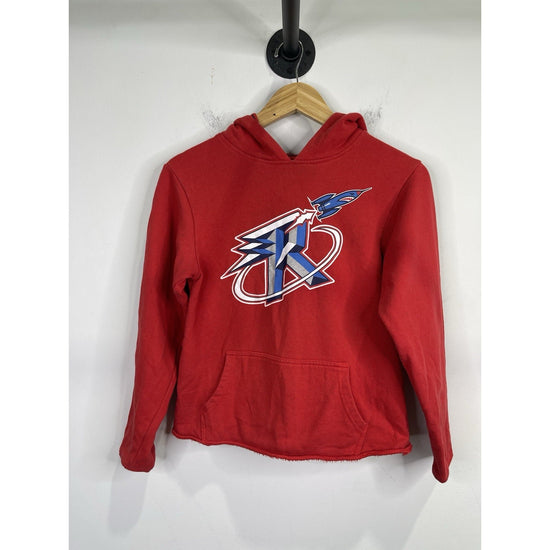 The product is a youth authentic Houston Rockets red graphic hoodie in size large. This hoodie is designed for basketball fans, specifically those who support the Houston Rockets in the National Basketball Association (NBA). The hoodie is in the team's colors of red and features the official logo of the Houston Rockets. It is suitable for young boys who are fans of the team and enjoy playing basketball themselves. Perfect for showing support for the Rockets during the regular season.